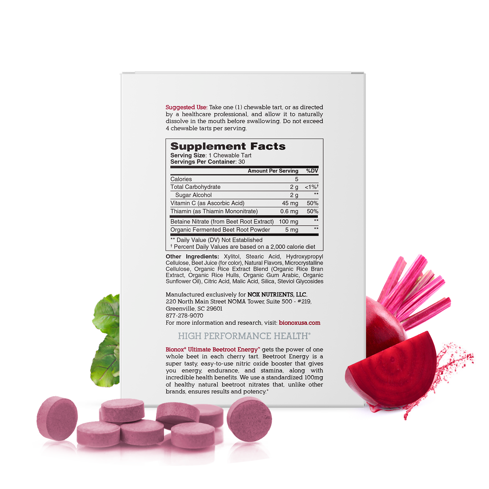 • Pairs well with our Bionox Ultimate Nitric Oxide Nutrition Product for a powerful, 24-hour nitric oxide boost.